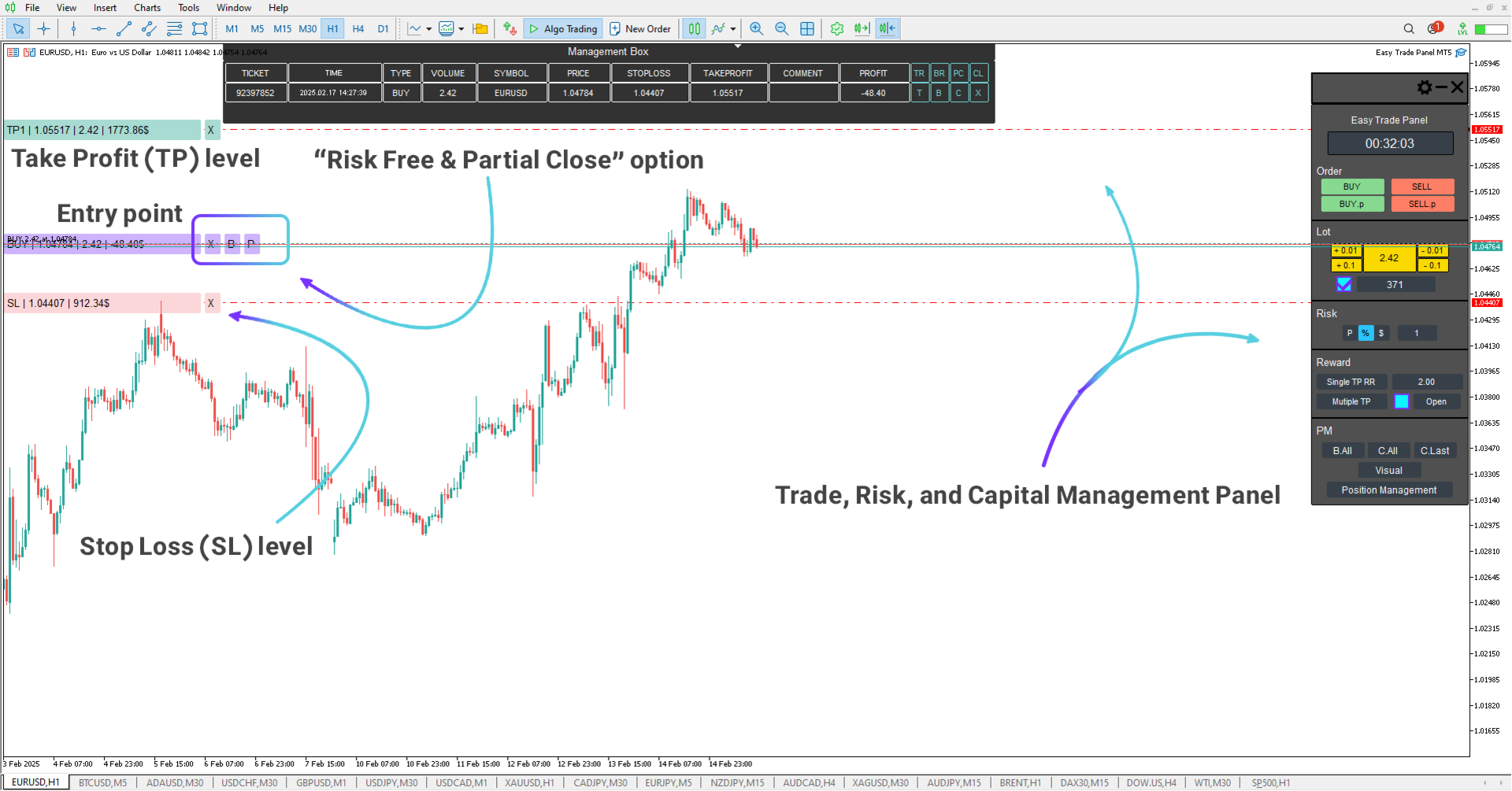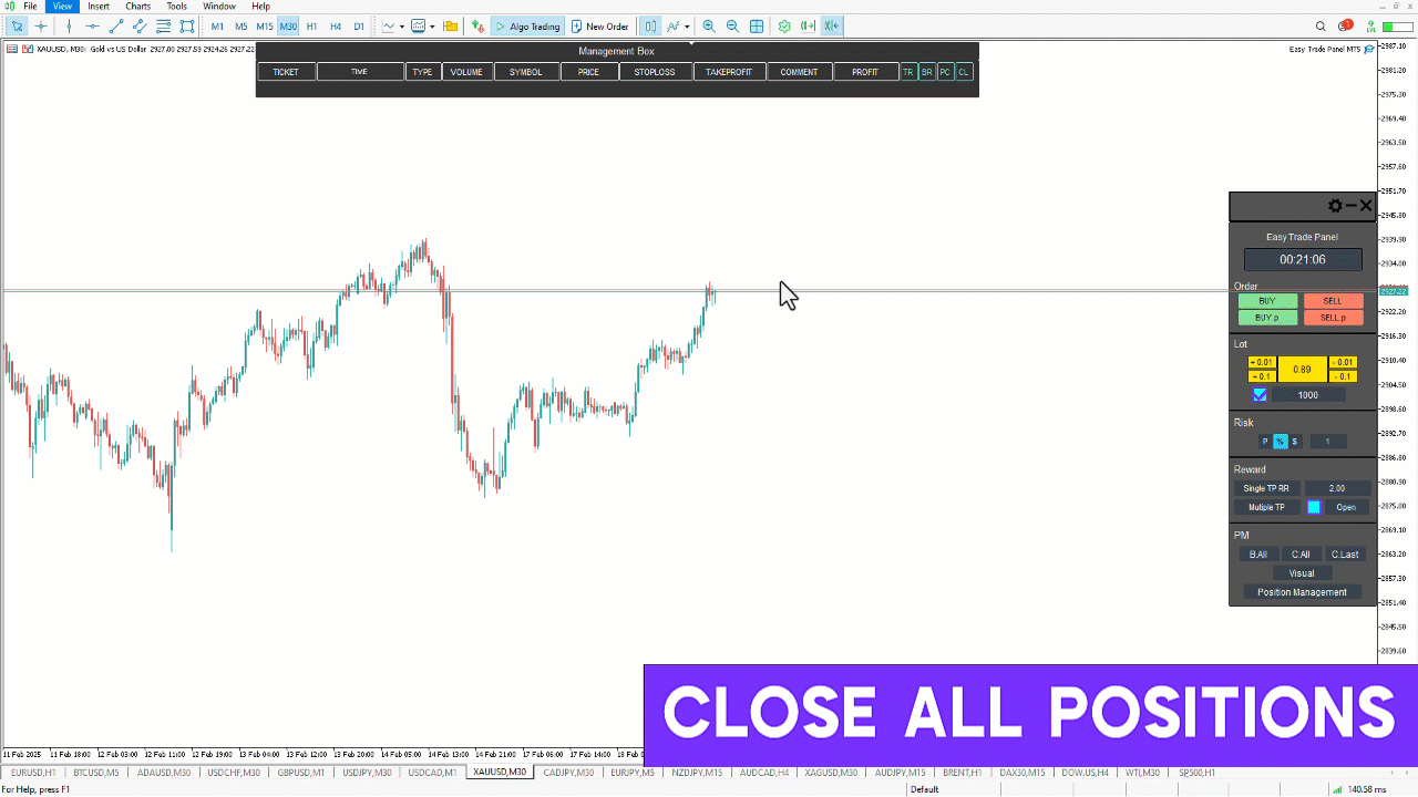 イージートレードパネルエキスパートは、トレーダーが利益を保護し、損失を最小限に抑えるのを助けるために設計されています。以下のような機能を提供します: