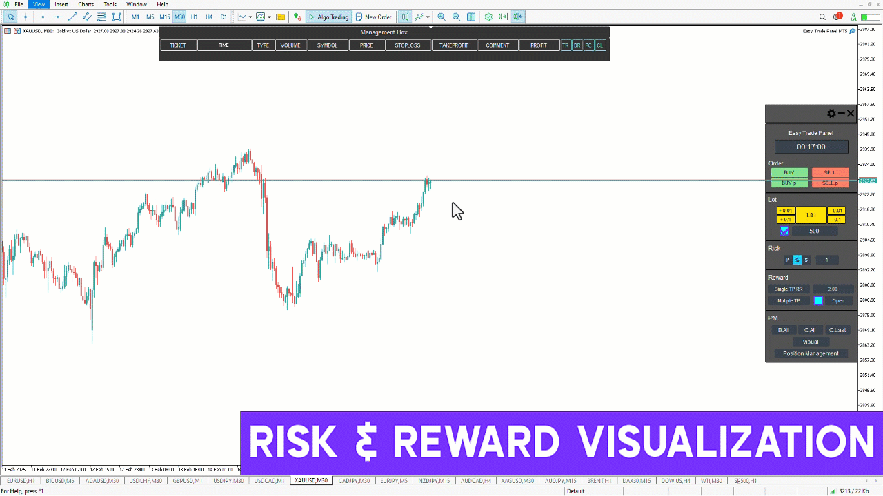 このイージートレードパネルエキスパートは、効率的なリスク管理と資金配分のために設計された強力かつ直感的なトレーディングユーティリティです。初心者とアクティブなデイトレーダーの両方に合わせて調整されており、インタラクティブなチャートベースのパネルを通じて、注文執行とポジション管理を簡素化します。