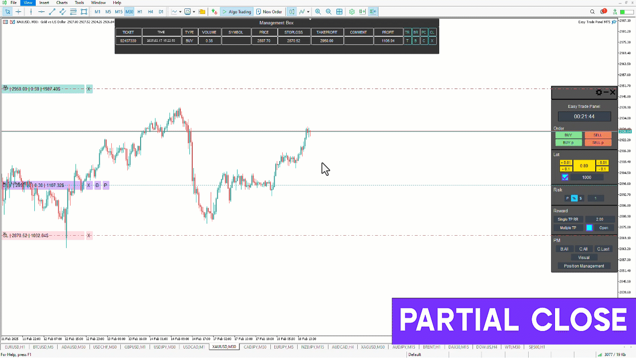部分決済機能を有効にして、利益を段階的に確保できます(例:特定のレベルに達したときに取引の50%を閉じる)。