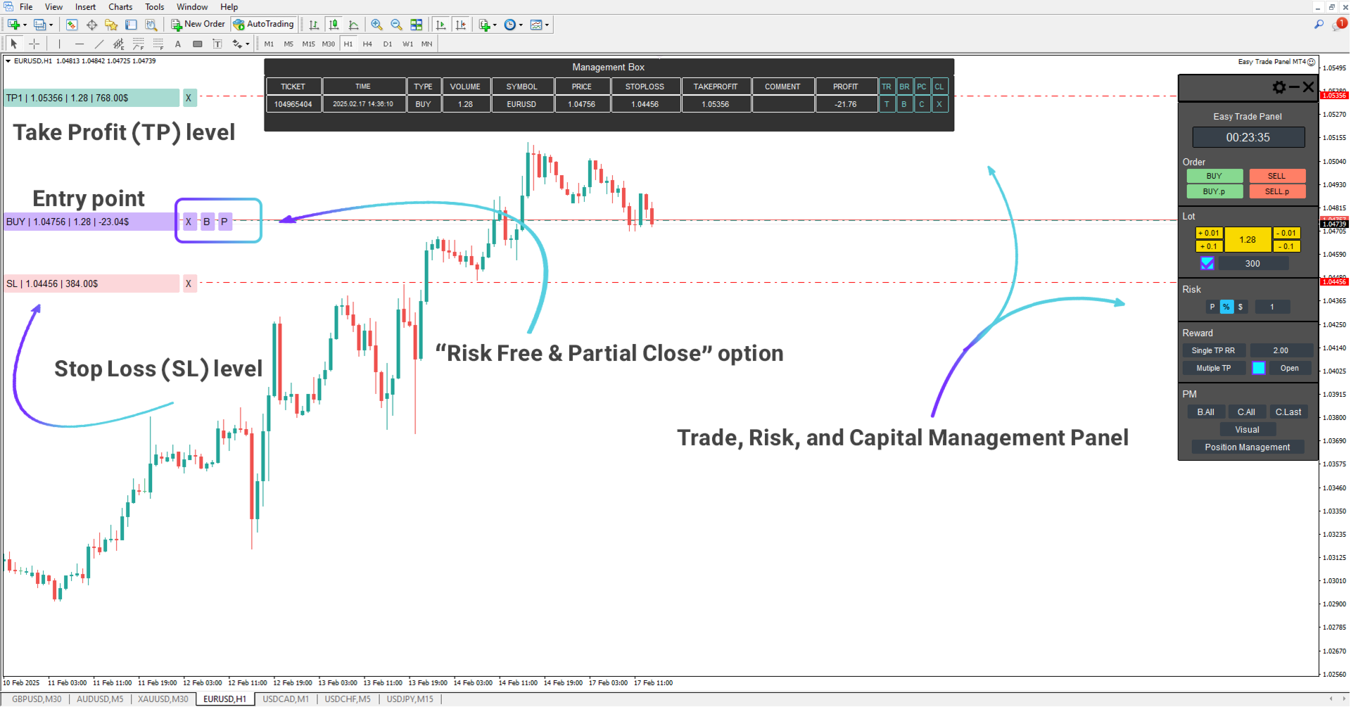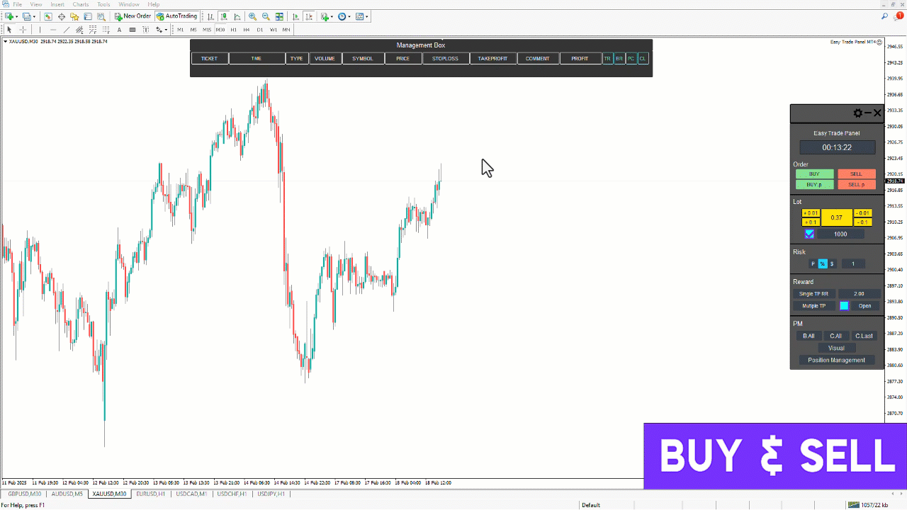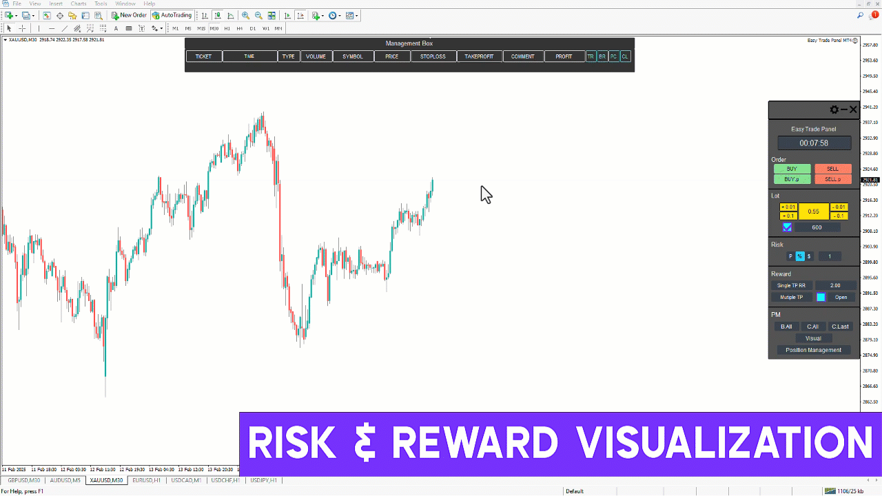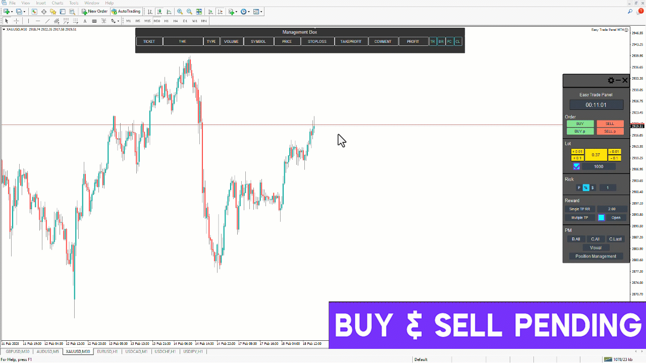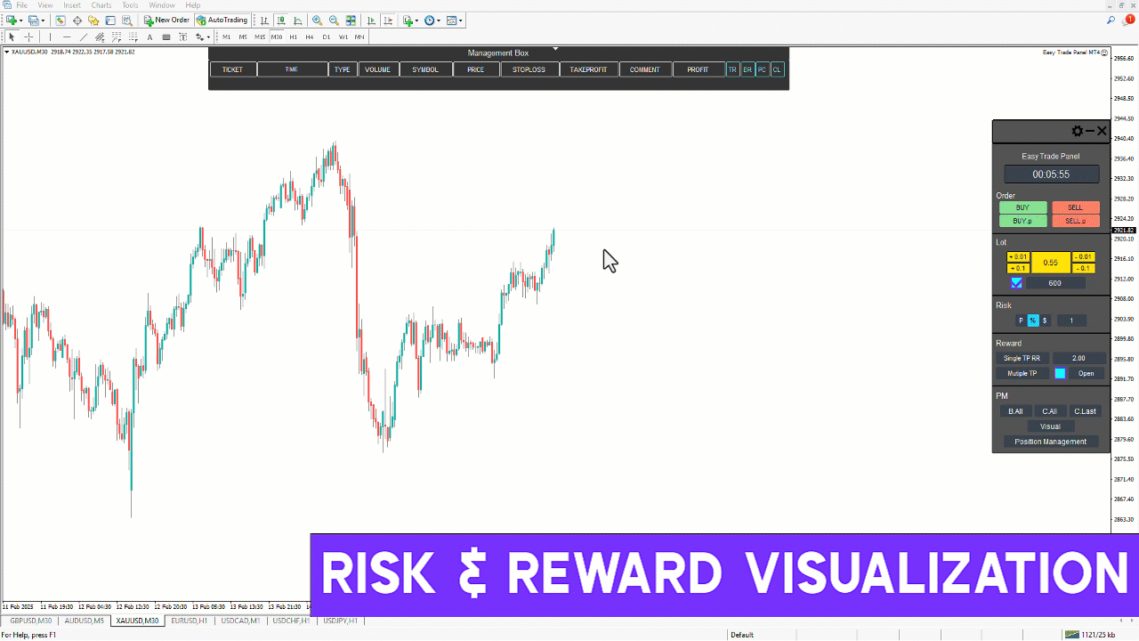 イージートレードパネルエキスパートは、プロフェッショナルグレードのソリューションを提供し、取引の実行と管理を行います。その機能はリスク管理を強化し、トレーディングの意思決定を合理化するように調整されています: