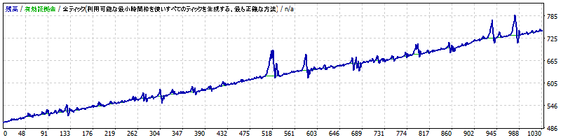 正直に言いますが、上記のテストではエントリーから決済まで1か月超かかる場面も何度かありました。トレンドが出ている時や反発するラインに引き付けてエントリーしたり、ボラティリティに合わせた利益を指定することで、多くの場合数分から数時間でで決済できるとは思いますが、不幸にもタイミングが悪いと、こういったことが起こりえます。1か月以上も寝ずにヘッジと買い増しを続けるなんてことを裁量でやるのは多分無理ではないでしょうか。