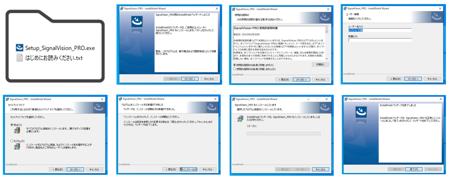 ご購入後、ダウンロードしましたら、「はじめにお読みください」のテキストガイドに従い、「Setup_SignalVision_PRO.exe」(インストーラーファイル)を実行します。