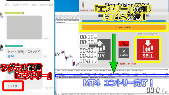 また、SignalVision PRO™と運営者様の半自動決済EA(半裁量EA)を
