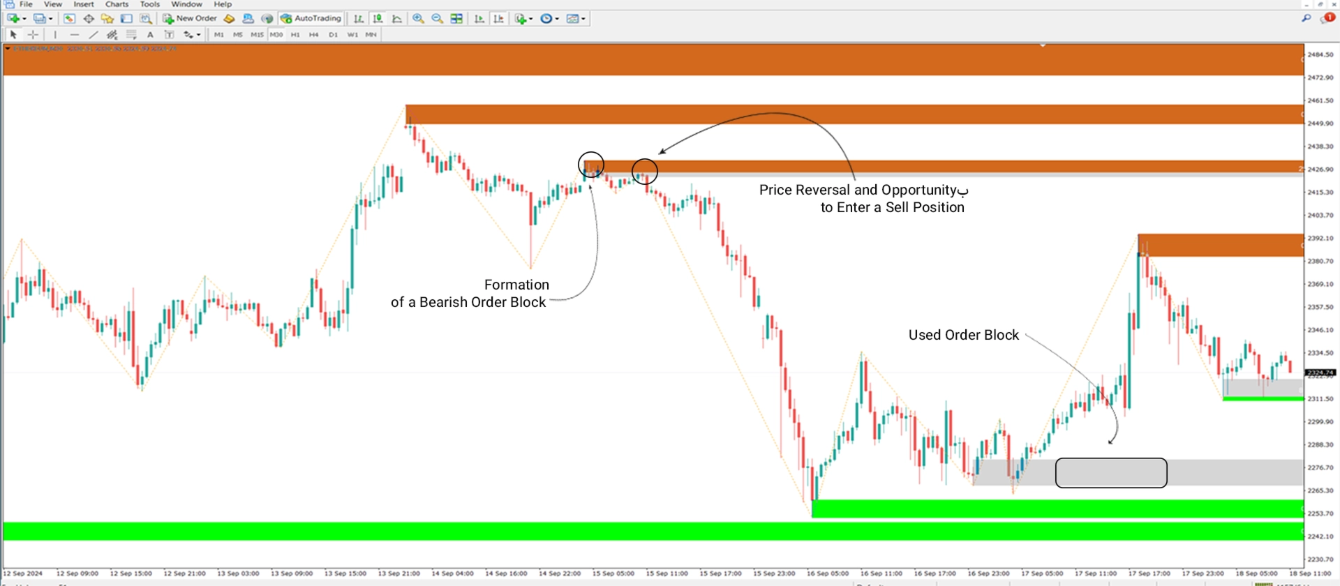 弱気のオーダーブロック ℳ ETH(M30)の例