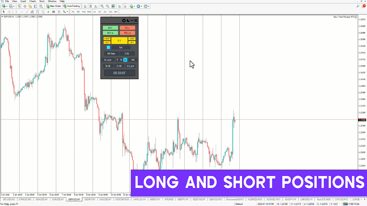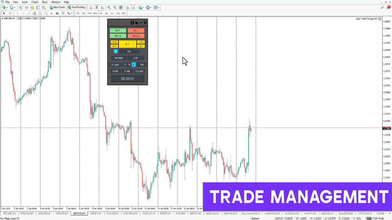 初心者でも経験豊富なトレーダーでも、イージートレードマネージャーエキスパートは、あなたの取引を完全にコントロールできるようにします。