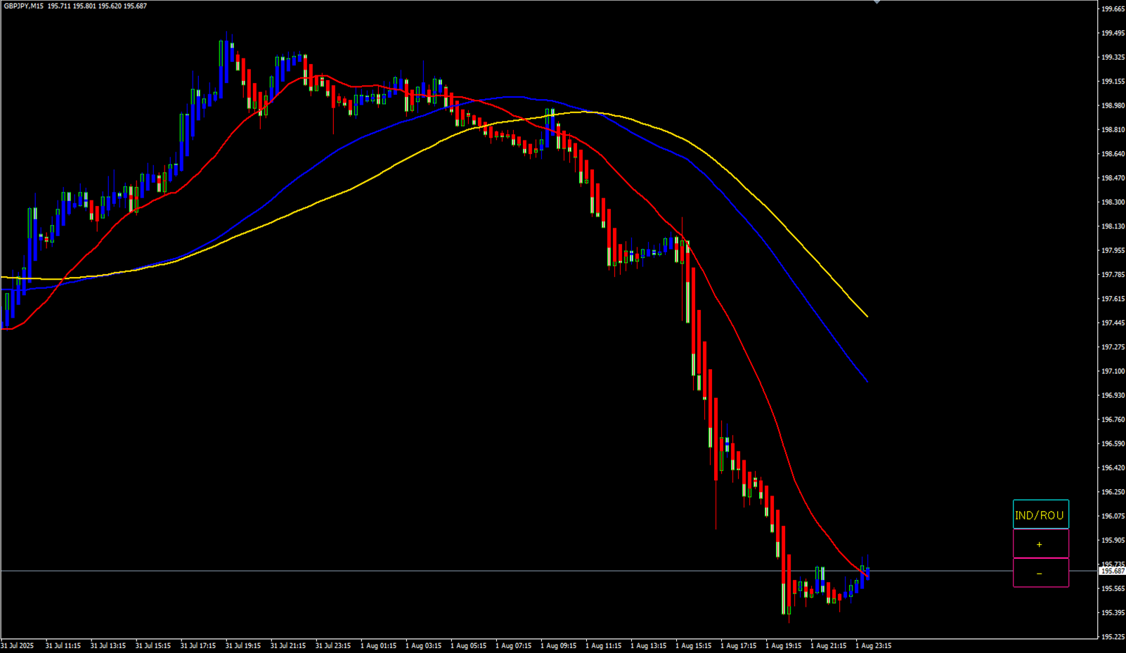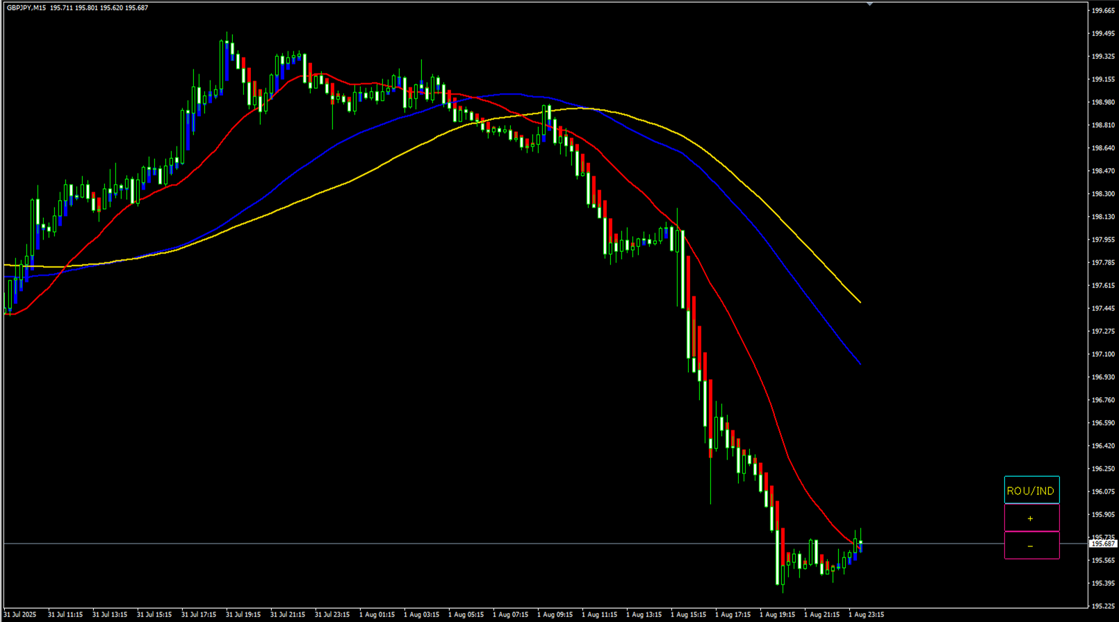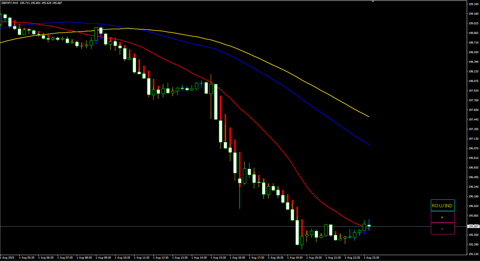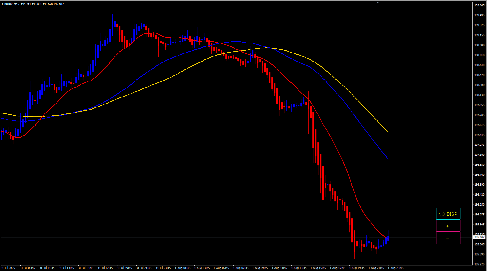 GMMAなどインジケータの表示がロウソクと重なることが多いインジケータなど使っている場合。