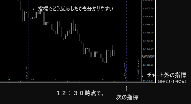 ・チャートより先の指標ラインを、チャート右端に表示 次の発表時間が近付いて来るのが見える