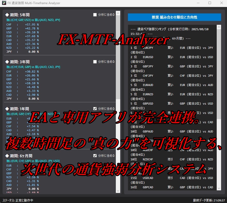 必ずフォルダごと移動・コピーしてください。 - 設置したフォルダを開き、`FX-MTF-Analyzer.exe`を