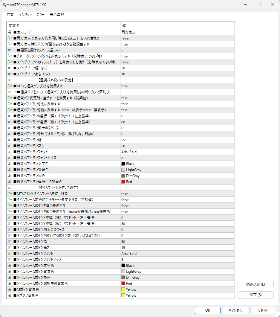 - MT5の通貨ペアリストを使用 気配値表示に表示される通貨ペアを自動的にボタンに反映させます