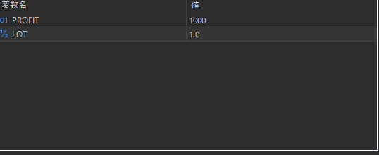 ①PROFITとLOTを指定します。