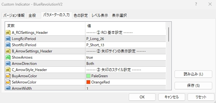 • ShortRciWidth: 短期RCIラインの太さを設定します。