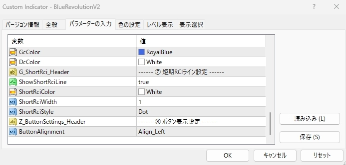• ShowShortRciLine: 短期RCIラインの表示/非表示を切り替えます。