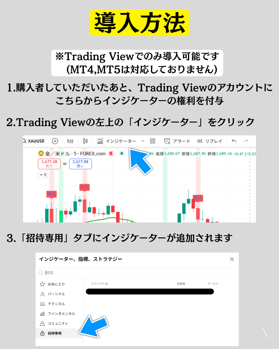 ・本ツールはTrading View専用です(他プラットフォーム非対応)。