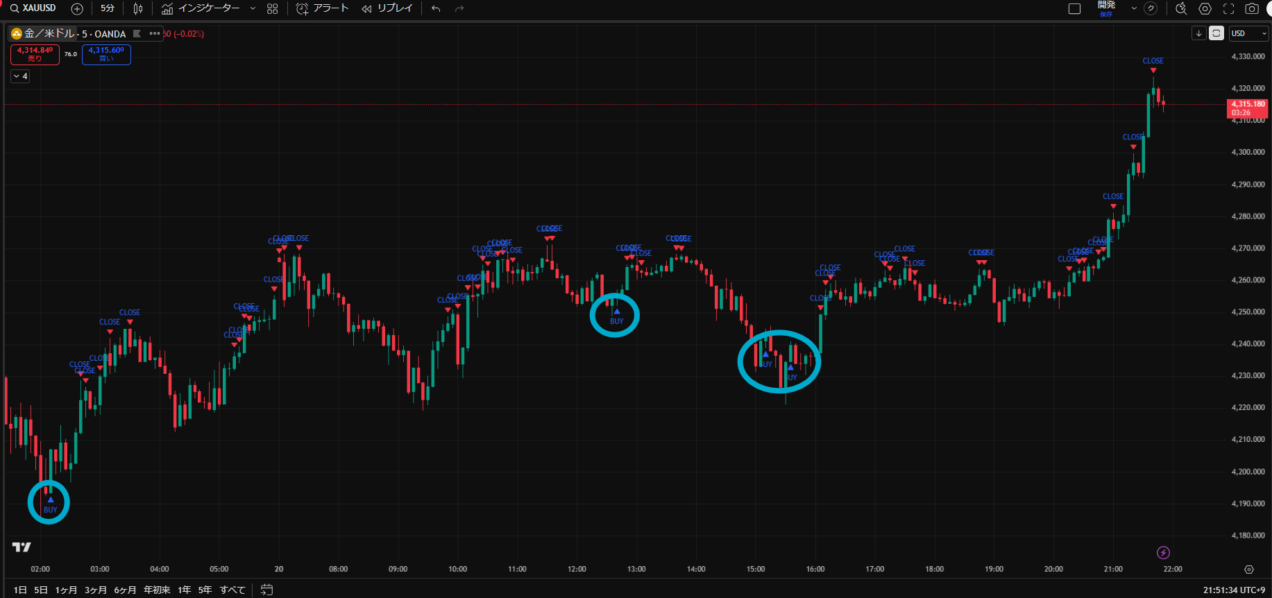 ゴールド5分足