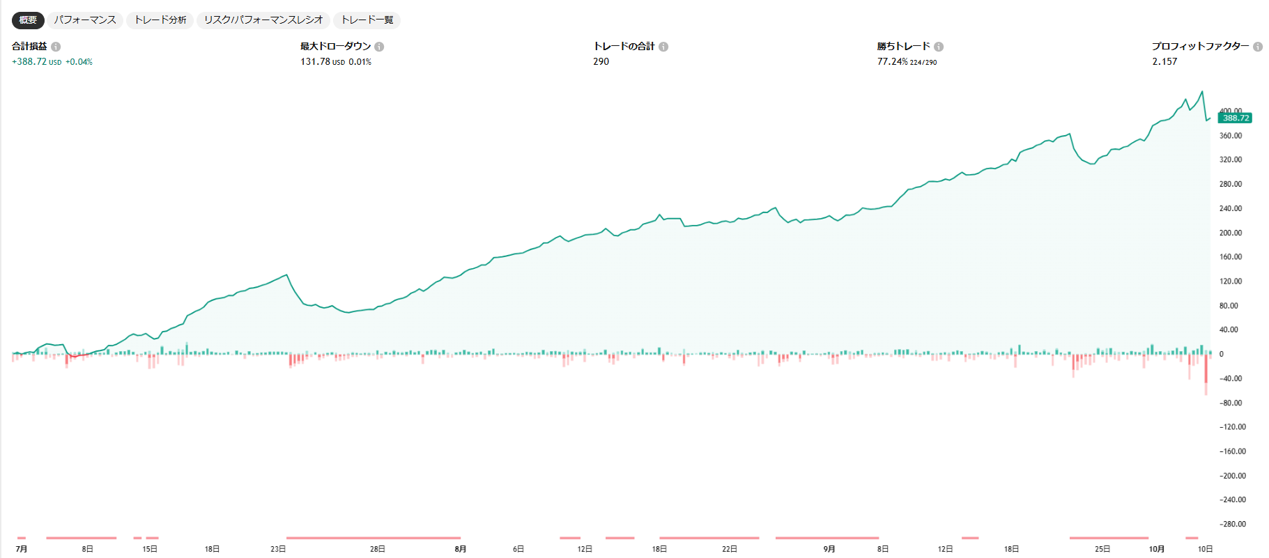 勝率もプロフィットファクターも大変有利なトレードを継続できています!