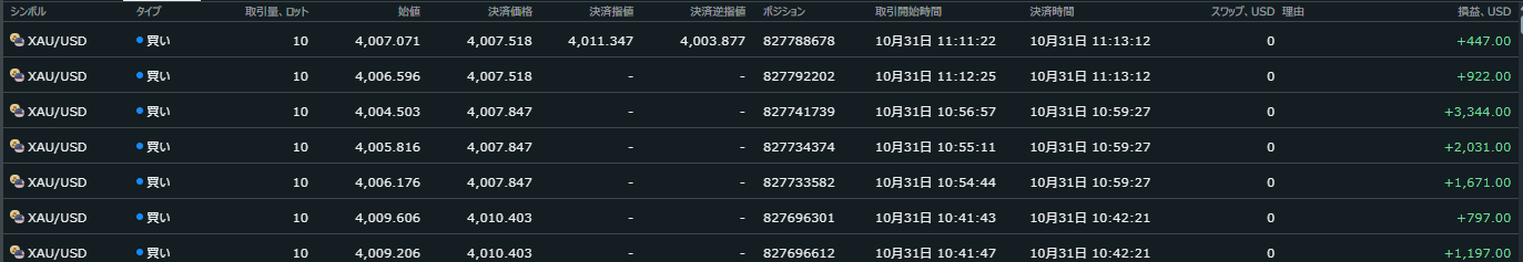 この日も簡単な日でした、ゴールド落ちている中、本インジはトレンドの初動を捉え、被害を抑えつつ利益を最大化できています。