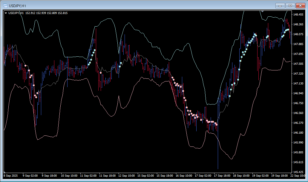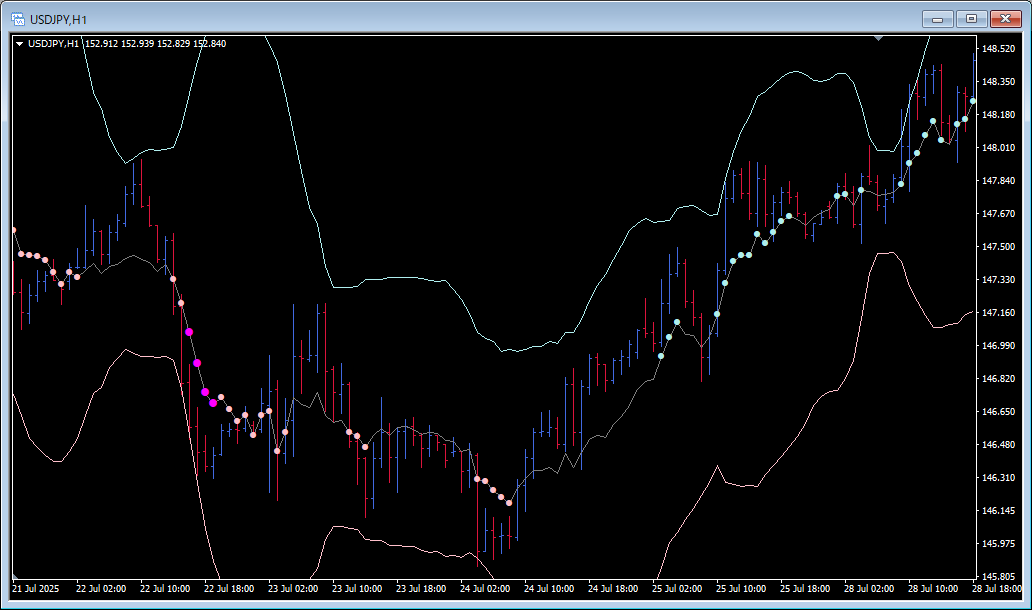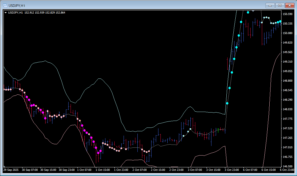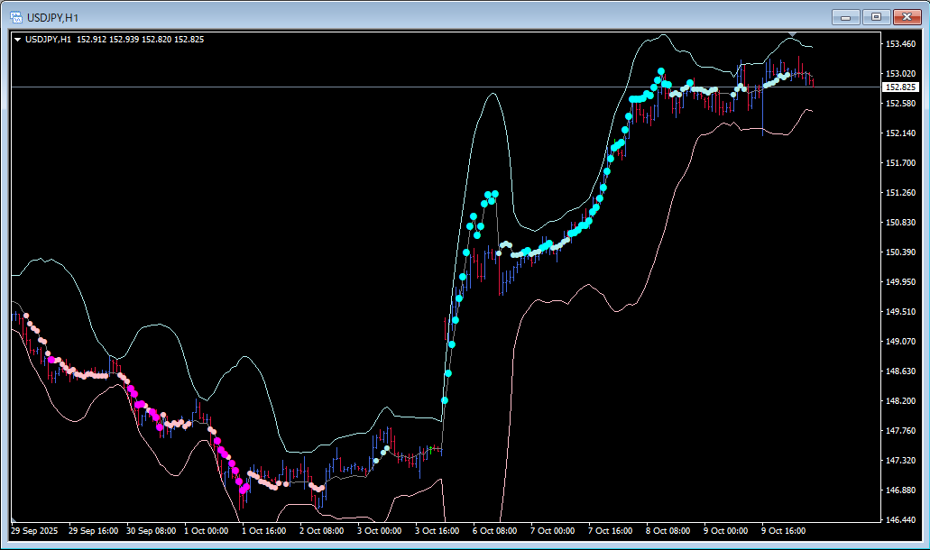 ■インジケータ「Mookie Band(ムーキー・バンド)」■単体でも勝てる!!ATS-25とのマッチングでも発揮します!トレンド方向、強さ、売られ買われ過ぎがわかる!!