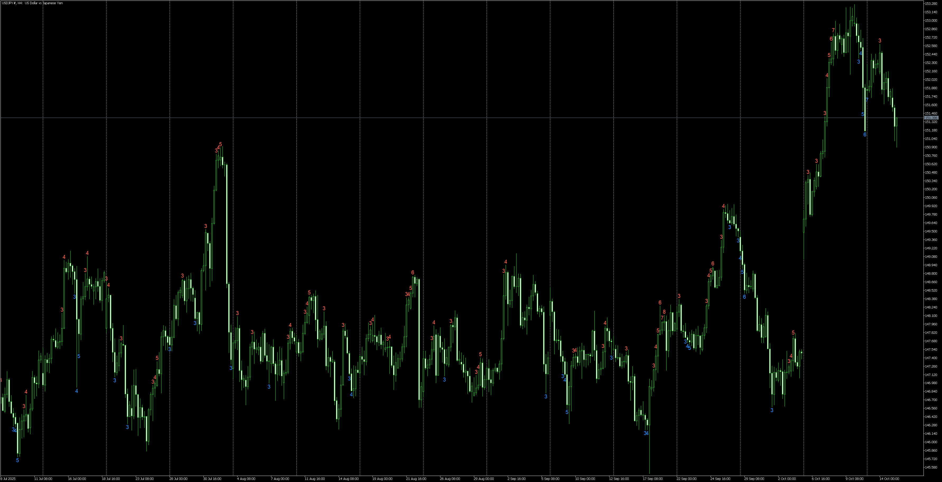 表示対象バーの限定: 「直近500本のみ表示する」といった設定が可能です。これにより、古い履歴に数字が表示されるのを防ぎ、インジケーターの動作を軽量に保ちます。
