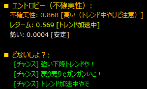 まとめ 相場に長く居ると95%のトレーダーが負ける理由? 「市場の不確実性」を測れていないから。 本インジケーターは、シャノンエントロピーとKLダイバージェンスで 市場の予測可能性を定量化。 さらに、最適なロットサイズまで自動計算。 もう勘に頼る必要はありません。 情報理論が切り拓く、科学的トレーディングの時代へ。 暫定シグナルでチャンスも逃さない。 信頼性とスピード、ぜひ両方を手に入れてください!
