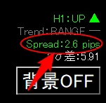 → スプレッドが指定値(pips)を超えている間はサインを非表示。