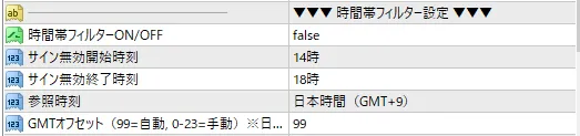 → 指定した時間帯のサインを無効化。「東京時間だけトレードしたい」「深夜帯はエントリーしたくない」といった運用に対応。