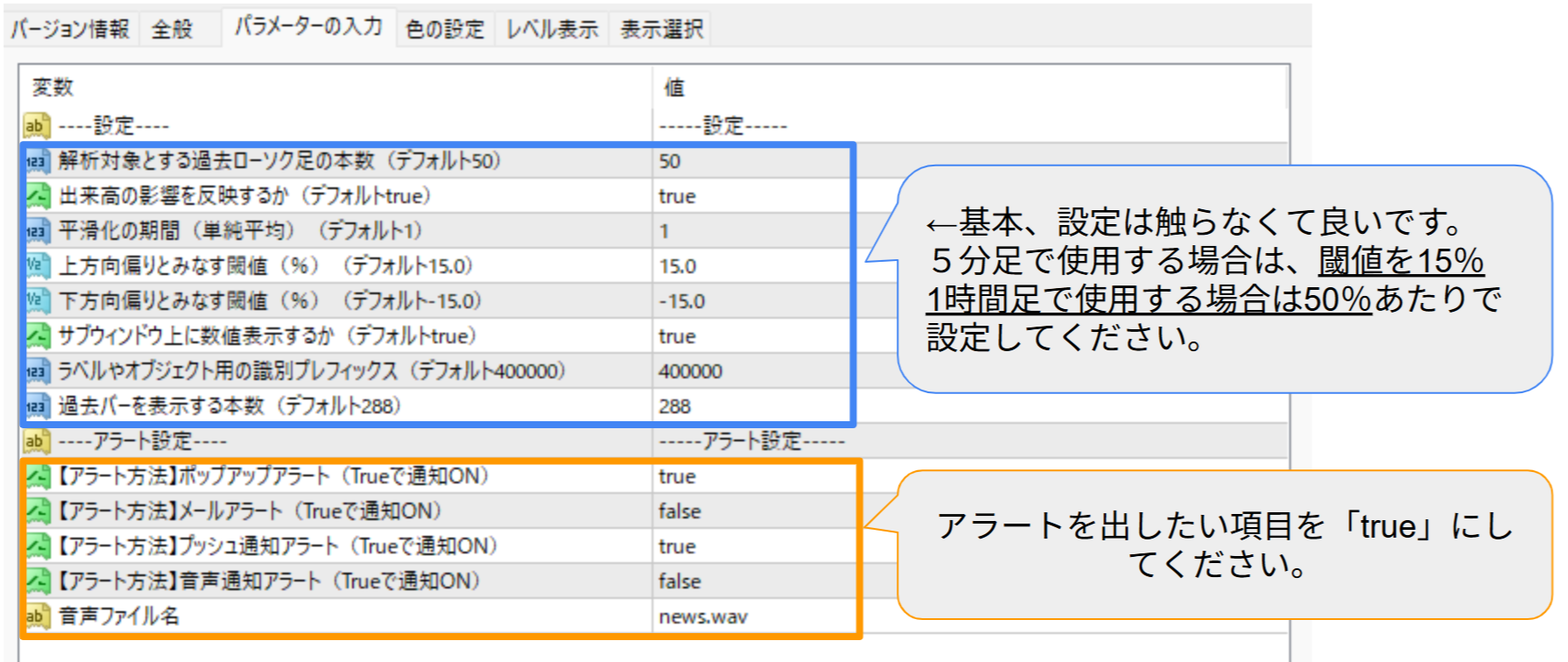 トレンド初動を逃さないための即時アラート機能搭載。 🔹 ティックボリュームで重み付け可能