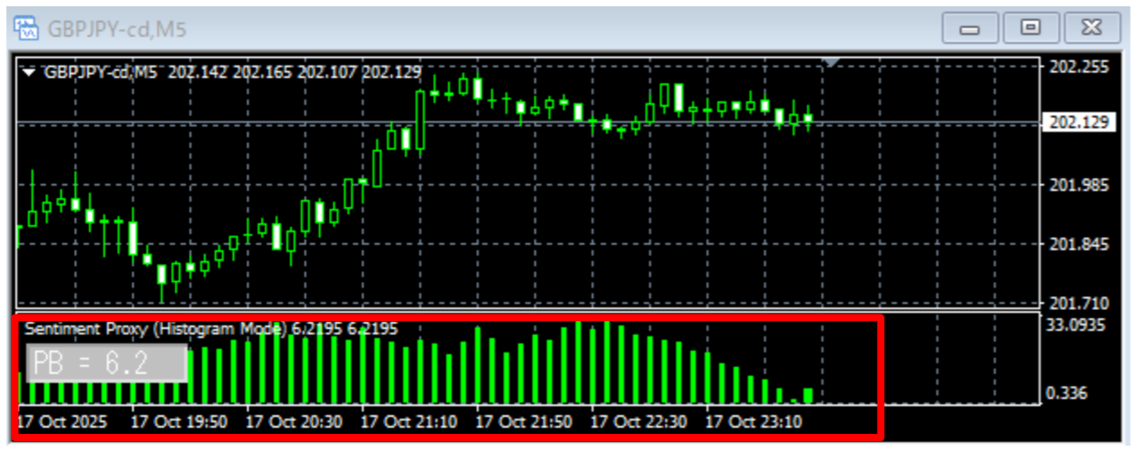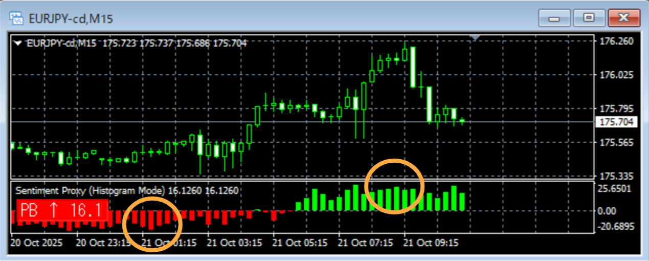 「チャートを見ても、いま「買いが強い」のか「売りが強い」のか分からない…」 そんなあなたの悩みを“数値”で明確にするのがこのツールです。 過去のローソク足データから市場の「買い/売りの偏り」をリアルタイムで解析。 その推移をヒストグラムとして時系列表示します。 つまり、「市場参加者の心理トレンドを可視化」するインジケーターです。