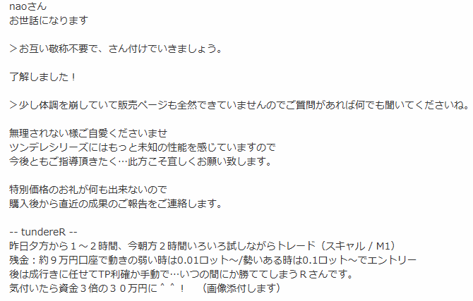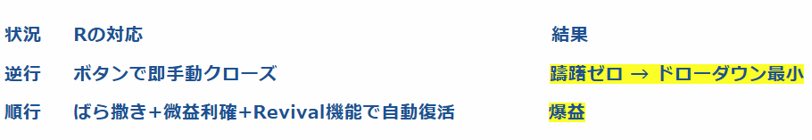 tundereR(R)の最大の利点は、「逆行即切り」 と 「順行爆益」 の完璧なバランス