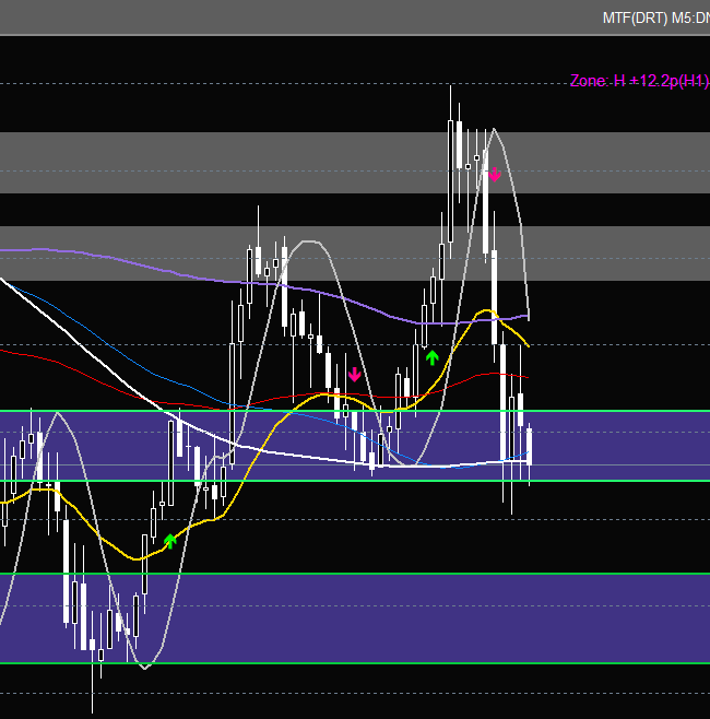 もう1度書いておきますが、1分足でのトレードは、①DRTサイン(矢印)がよく出るので非推奨です。もし1分足スキャルピングをされる場合は、必ずルールを徹底して行ってくださいね。