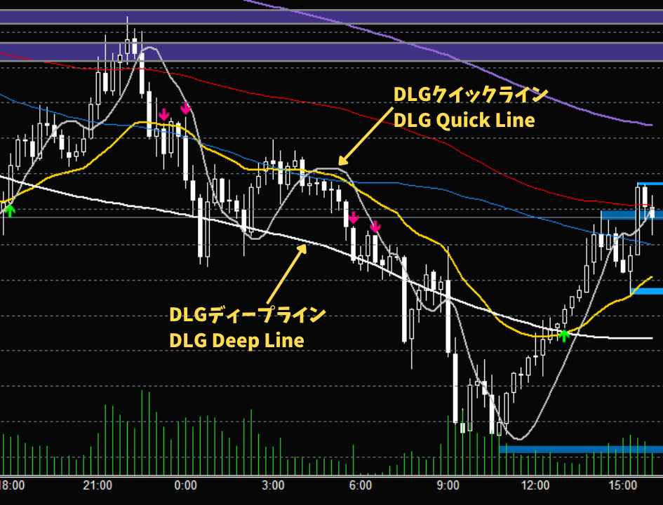④DLGクイック(短期)ライン:傾きの方向が一致しているか確認。