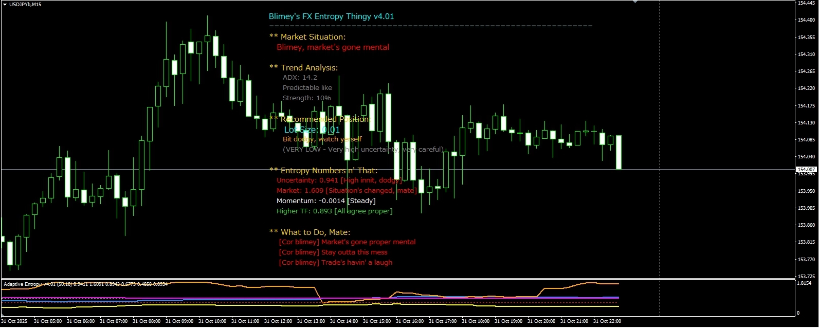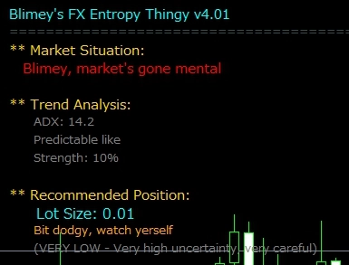 まとめ 相場に長く居ると95%のトレーダーが負ける理由? 「市場の不確実性」を測れていないから。 本インジケーターは、シャノンエントロピーとKLダイバージェンスで 市場の予測可能性を定量化。 さらに、最適なロットサイズまで自動計算。 もう勘に頼る必要はありません。 情報理論が切り拓く、科学的トレーディングの時代へ。 暫定シグナルでチャンスも逃さない。 信頼性とスピード、ぜひ両方を手に入れてください!