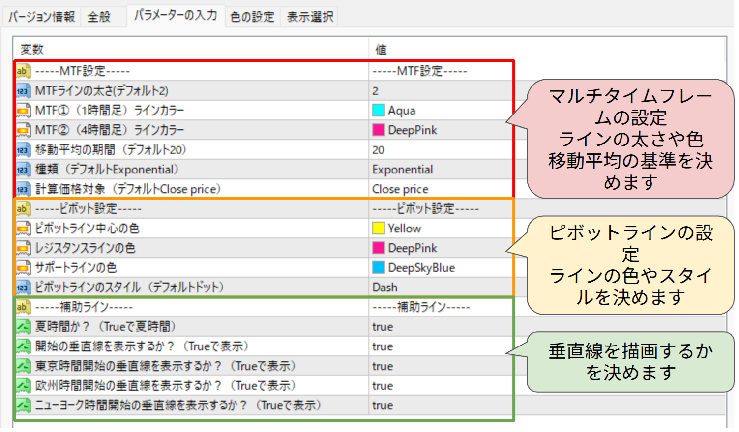 マルチタイムフレーム及び、ピボットの広がりからエントリーする方向性を決めることが出来ます。
