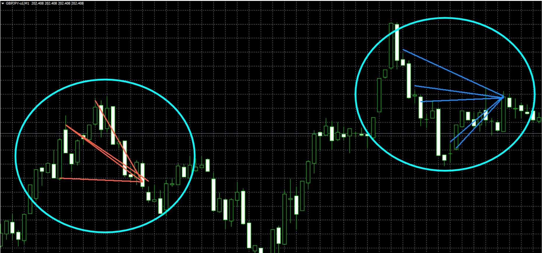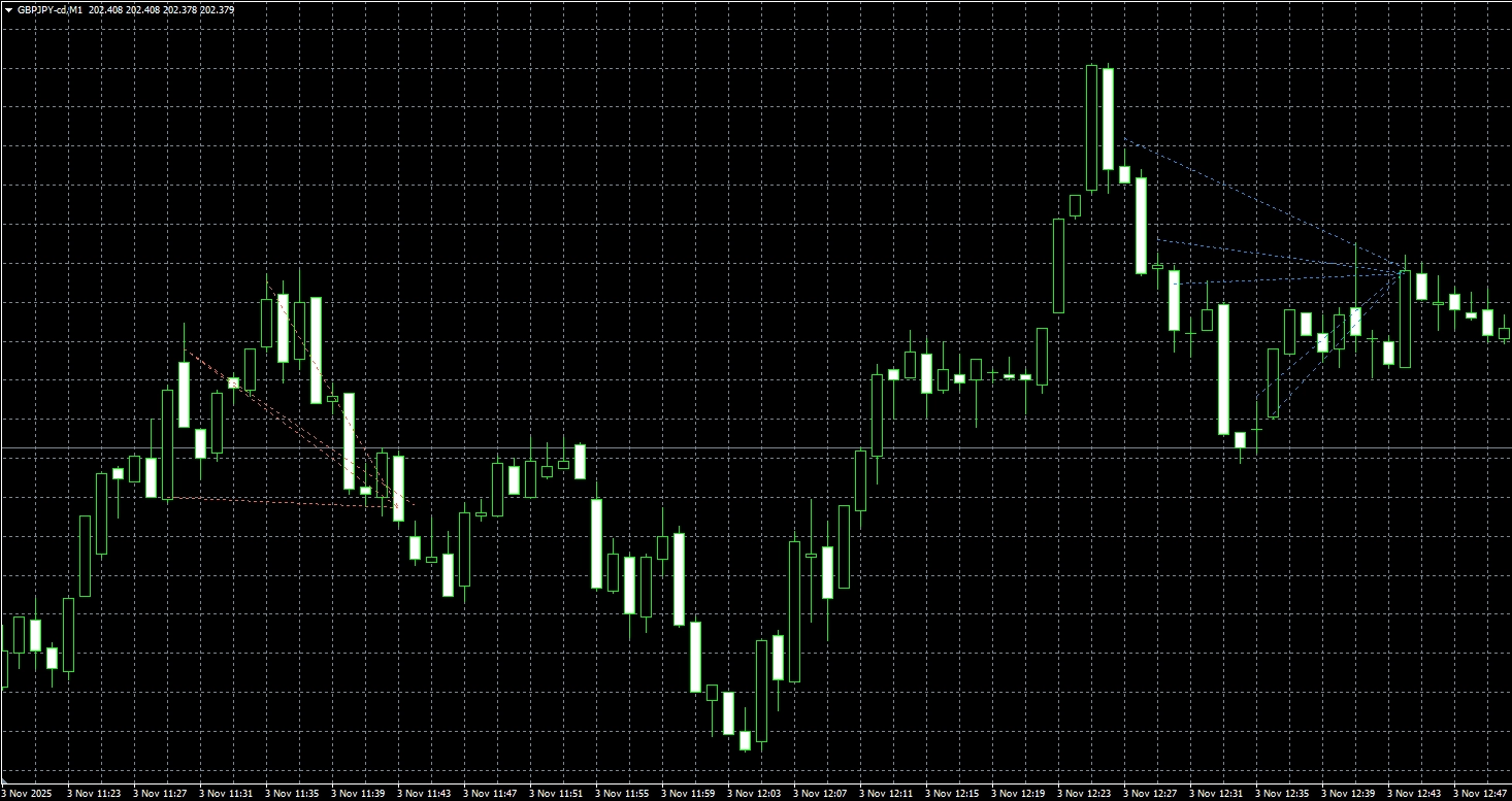 チャート内にトレードの履歴(3履歴のみ)を表示します。