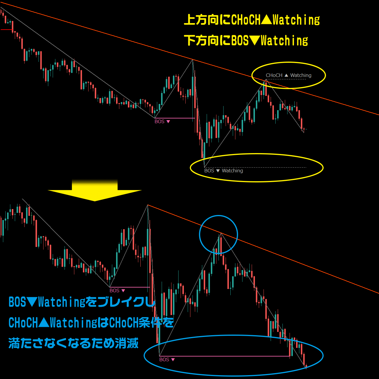 ★Watching消滅 → 逆方向CHoCH/BOSで転換