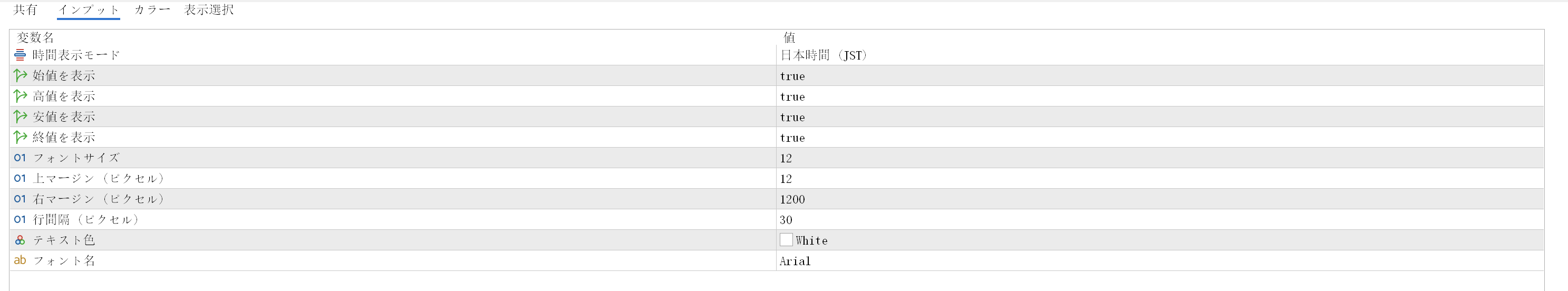 - 簡単ホバーで詳細表示:始値・高値・安値・終値が瞬時にポップアップ。サーバー時間 or 日本時間モードを選択可能で、曜日も自動表示。