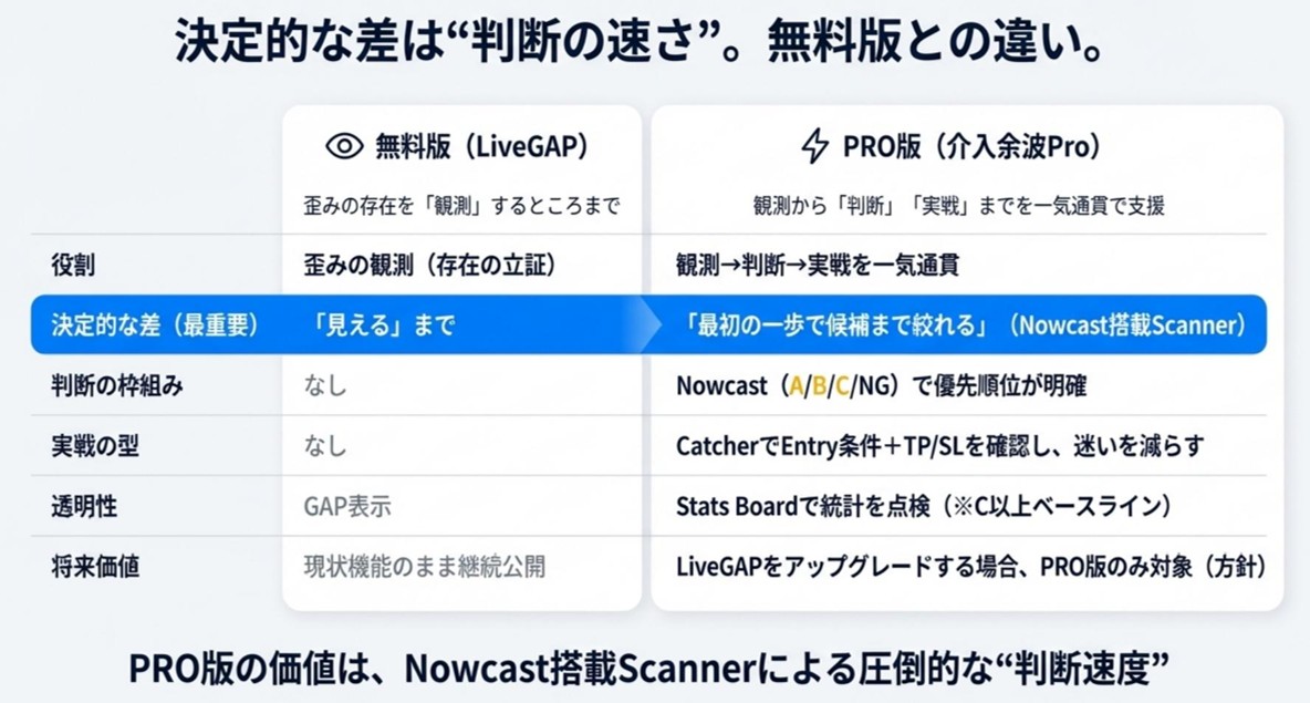 LiveGAP=観測。PRO=判断と実戦。