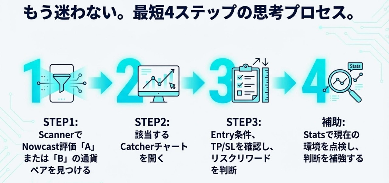 • Nowcast:今の局面を狙う価値をA/B/C/NGで評価する最上位フィルター