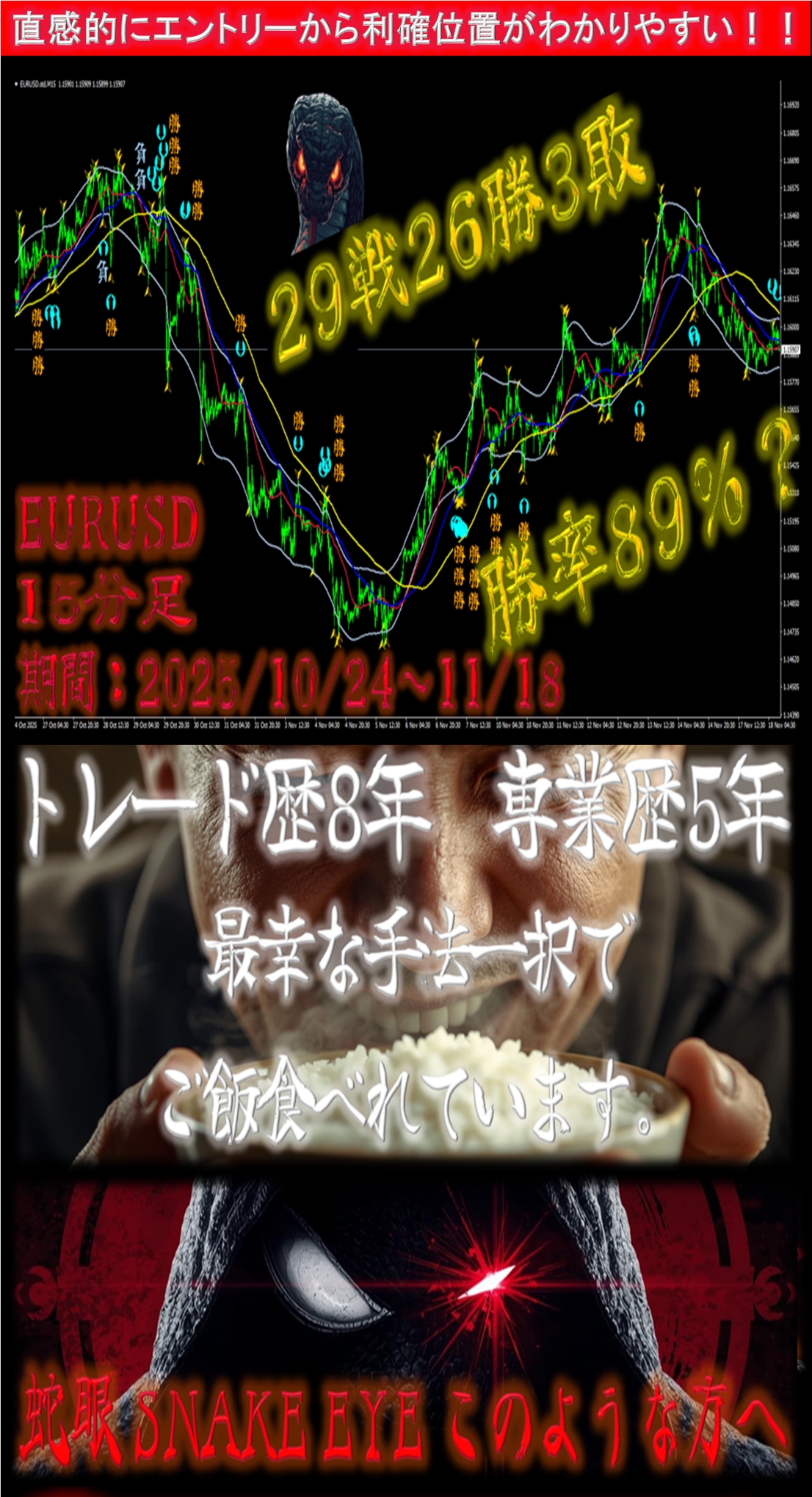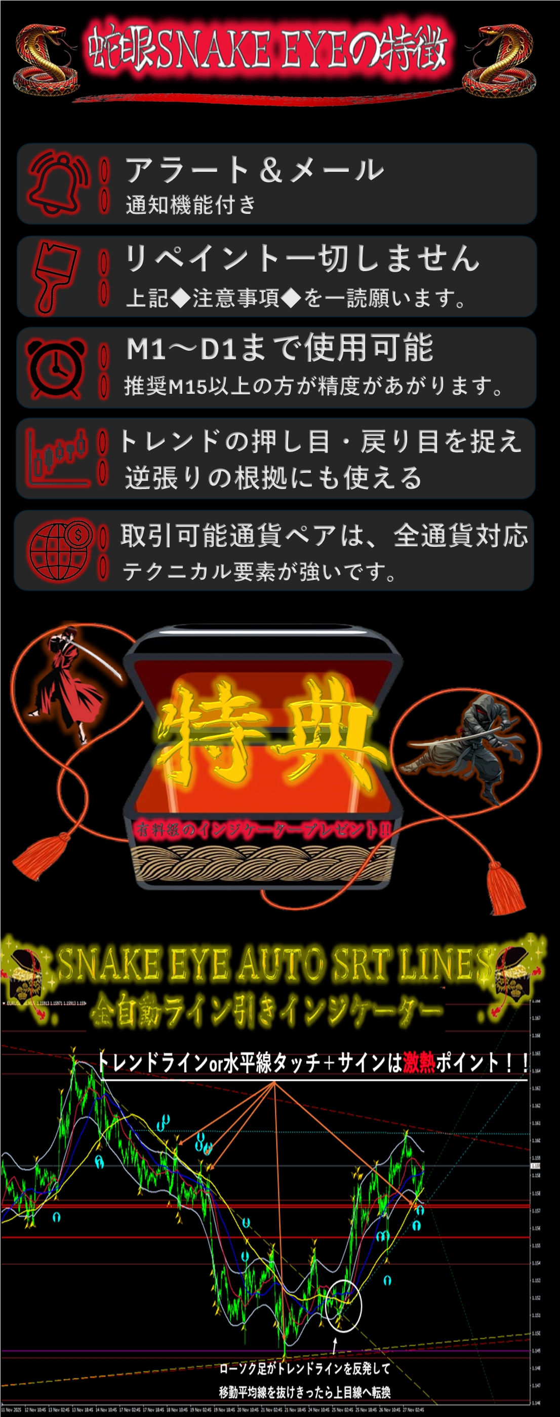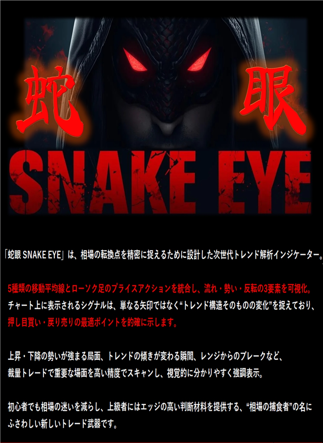 「蛇眼 SNAKE EYE」トレンドのわずかな歪みを捉え、転換点を射抜く。精密なエントリーと確信あるエグジットを実現する相場の新基準。
