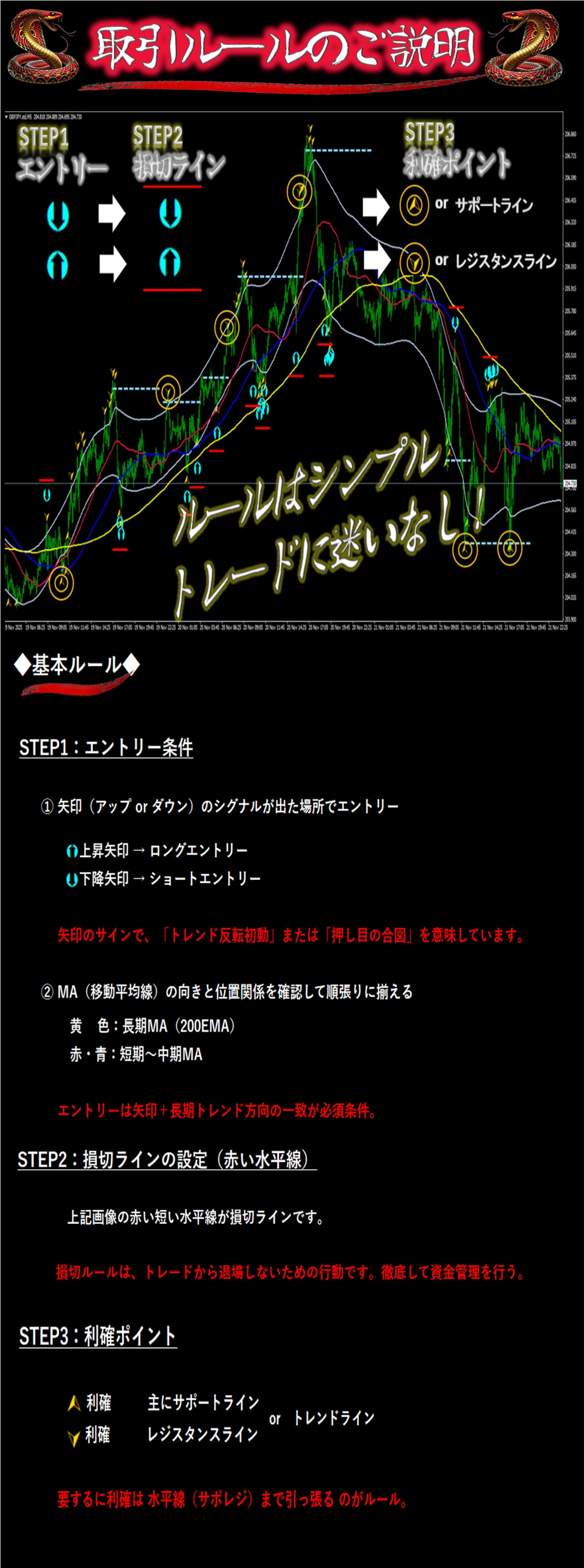 【高勝率のプロの手法公開】一歩先の値動きを5種類のMAとローソク足のプライスアクションで捉える。流れ・勢い・反転を高精度に可視化し、“相場の捕食者”としてあなたの武器になる。