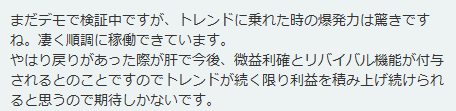 私の使い方は、押し目などを狙いエントリーし逆行で即損切り指値は残したまま再エントリーを繰り返し順行した時に利益を出しています。