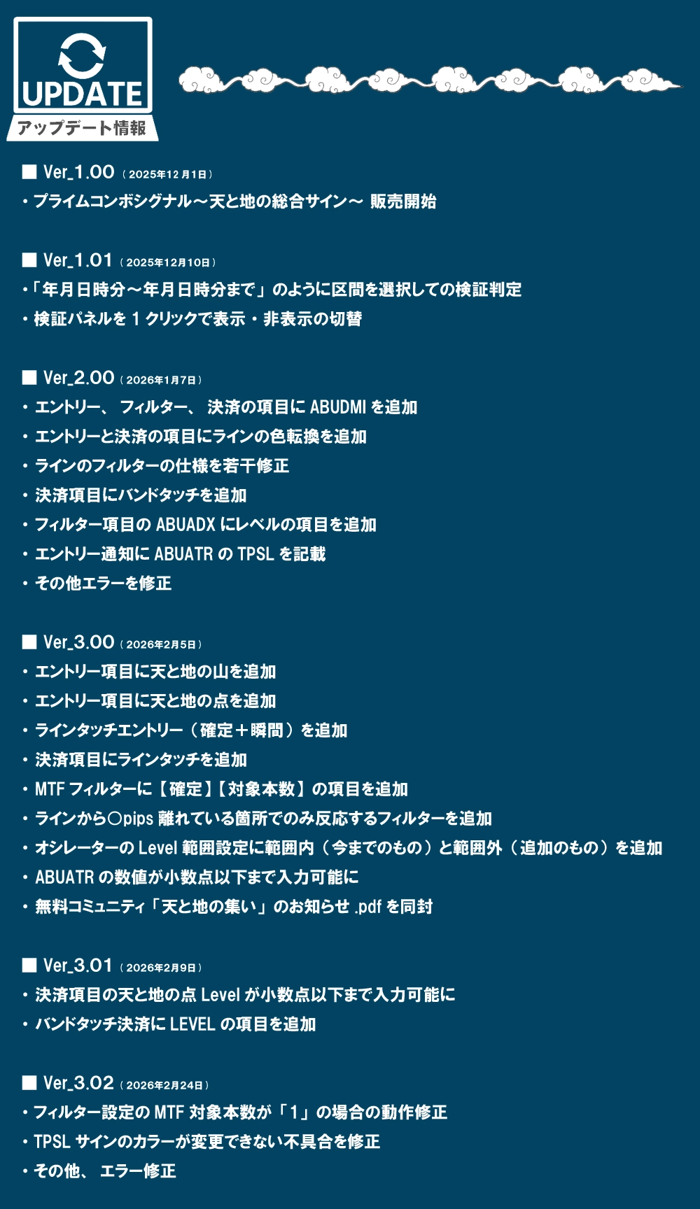 「天と地」シリーズの最終進化形。サイン点灯と同時にSL・ロットを自動算出。過去の勝敗・勝率・獲得pipsも一目で確認できる、直感で勝負する新時代のシグナルシステム。