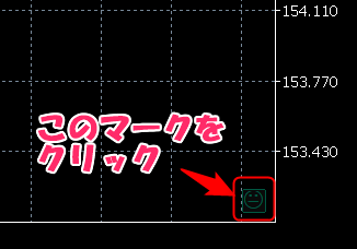 インジケーターを適用すると、チャート右下に ニコニコボタン が表示されます。