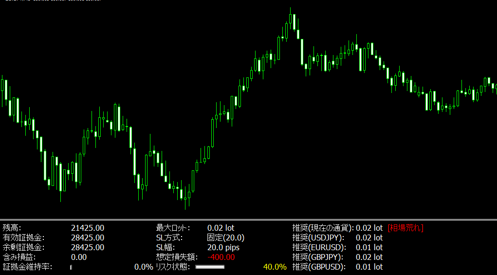 これにより、過剰ロットによる口座破綻リスクを抑えつつトレード判断を行うことができます。