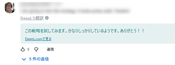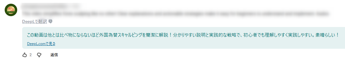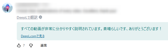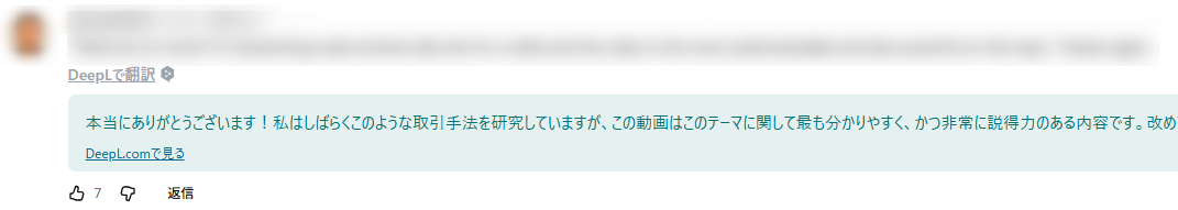 Youtube動画のコメントから一部抜粋(日本語訳)