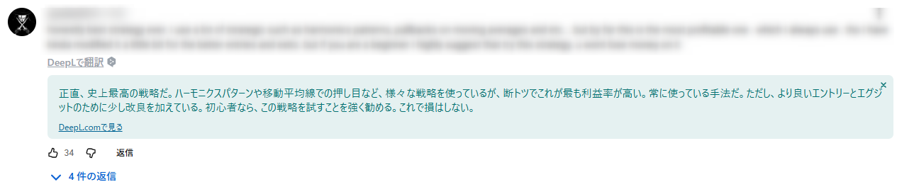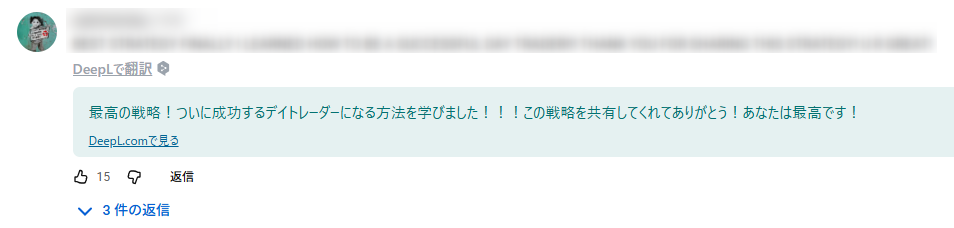 これらのコメントからも分かる通り、このトレーディング戦略は海外の多くのトレーダーから 「分かりやすい」「再現性が高い」「実際に使える」と高く評価されています。