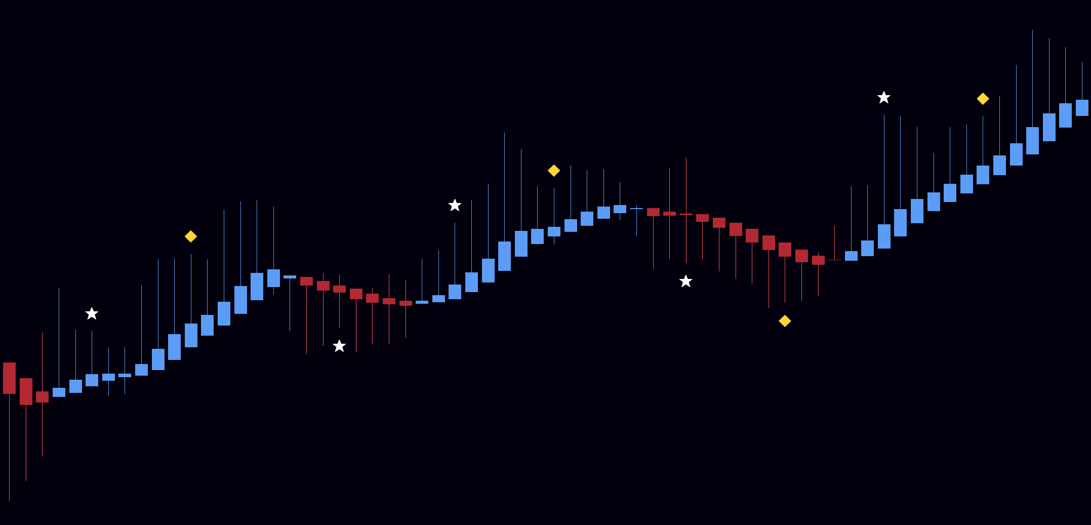ローソク足を滑らかに可視化。色の揃いでトレンドが一目で分かる、相場判断を迷わせないスムーズ平均足インジケーター。