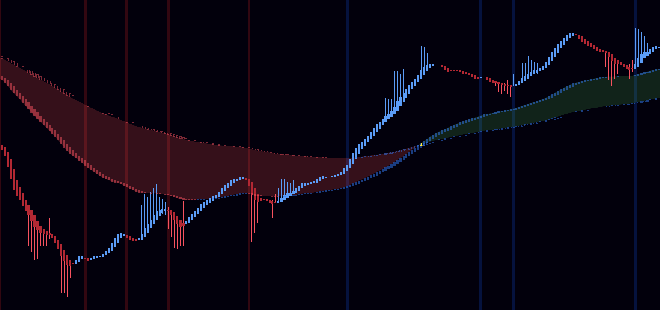 ■主な機能 本インジは、短期・中期・長期の平均足を滑らかに可視化し、トレンド方向・転換タイミング・揃い局面(短中長一致)を一目で判断できるトレンド特化インジです。 短期 → エントリー補助 中期 → トレンド把握 長期 → 大局認識 色の切り替わり・逆ヒゲ・短中長の色揃いを背景色で強調し、相場の勢いと転換ポイントを直感的に捉えることができます。 さらに、 短期の色変わりから N 本目に印 中期×長期のクロス(GX/DX) 中期と長期の雲(Cloud) なども用意し、トレンドの強弱判定にも役立ちます。 💡 視認性を最優先に設計されたスムーズ平均足 で、初動・継続・失速の判断がしやすく、裁量トレードで高い効果を発揮します。