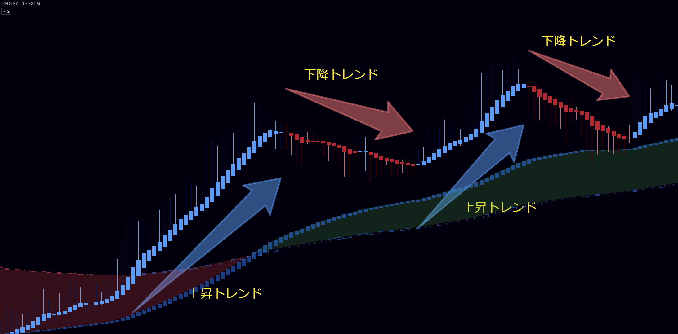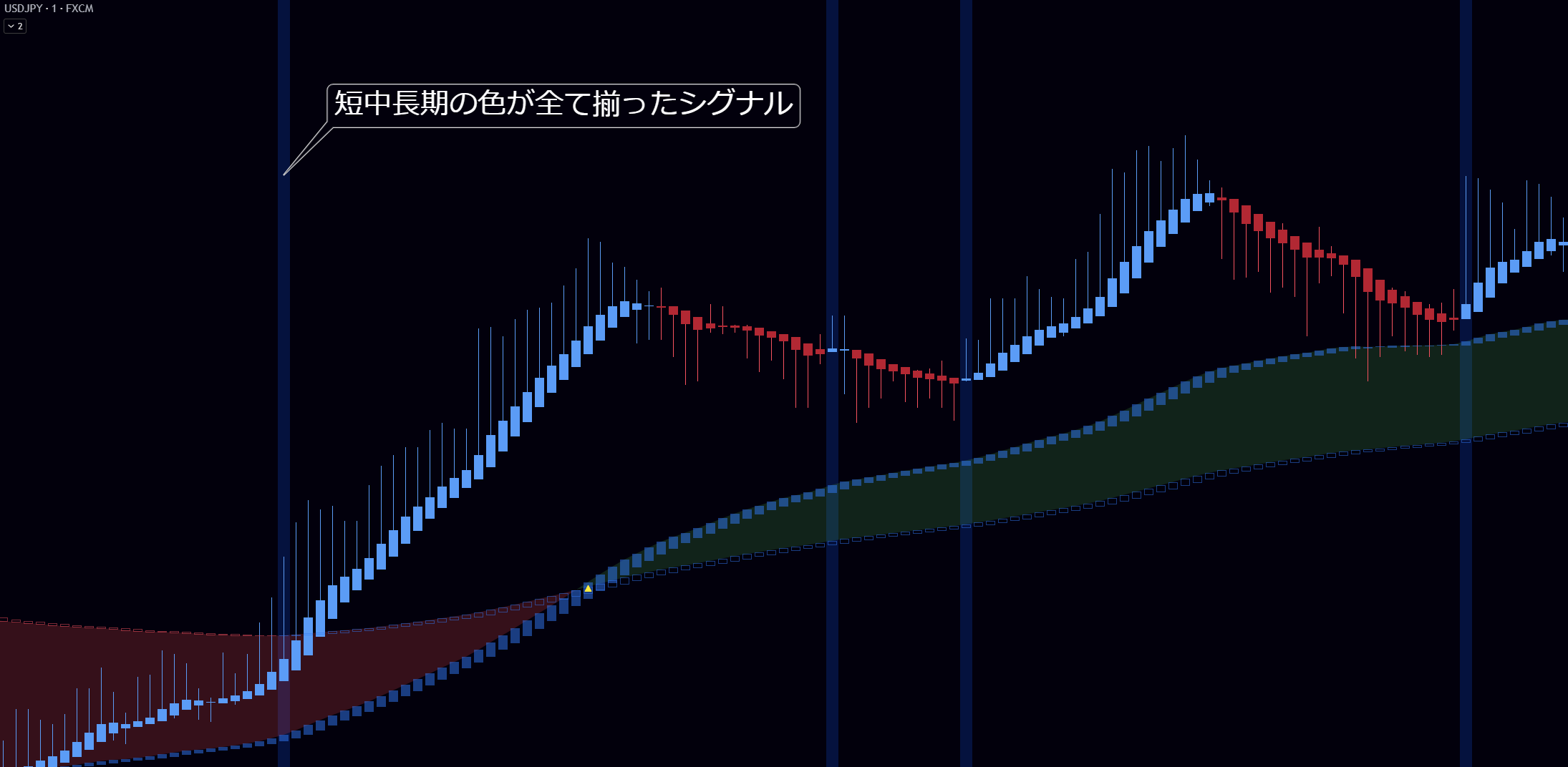 中期と長期の雲を表示ることで、トレンドの視覚化に役立ちます。