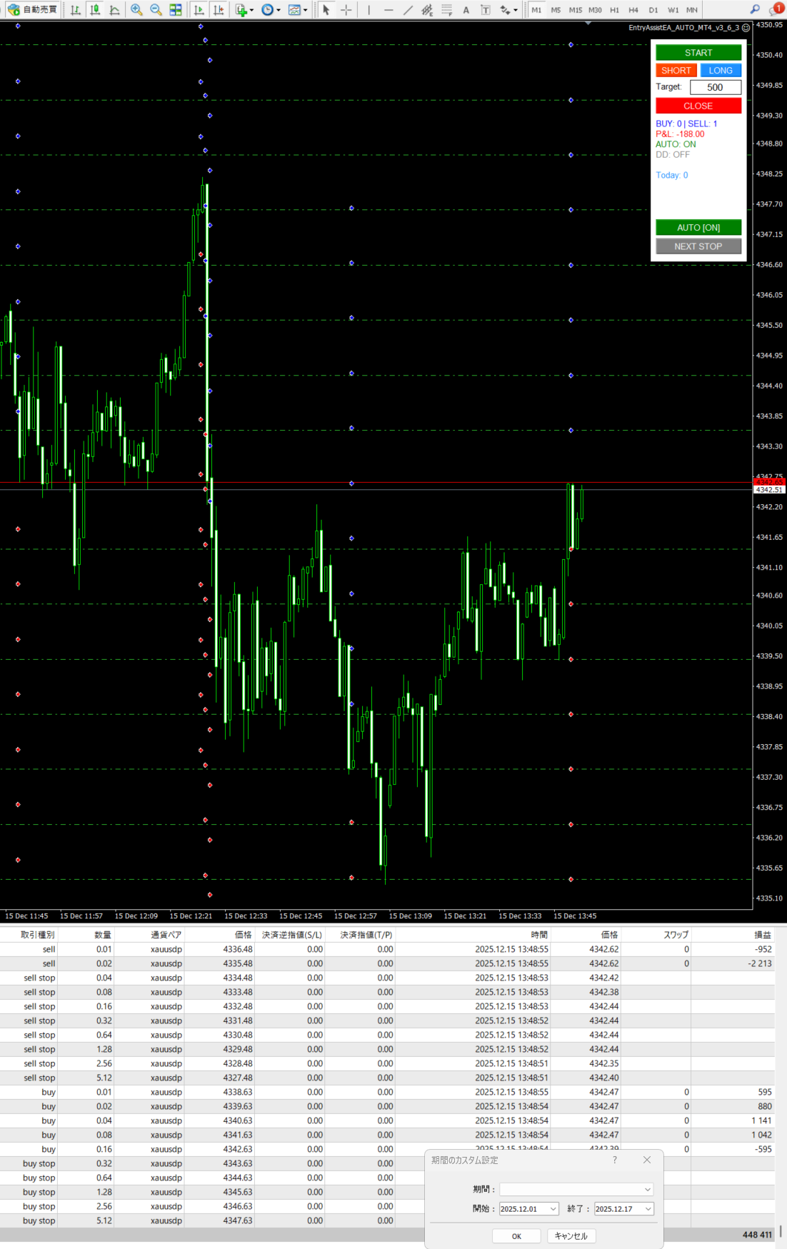 MT4版 12月1日~12月15日21時現在の収支報告です。