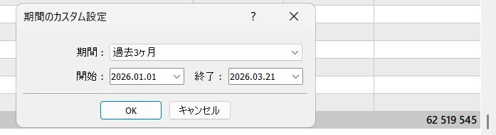 過去3ヶ月間 1月1日~3月21日 +62,519,545円